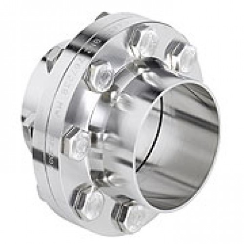 Sterile orbital flange union. Optimum design according to recommendation of the ASME BPE Bioprocess directives, guaranteed crevice free.